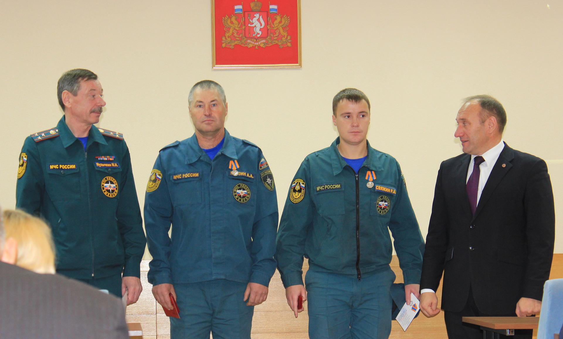 Вручил медали и поблагодарил спасателей за профессионализм и мужество глава МО город Ирбит Агафонов Геннадий Анатольевич.