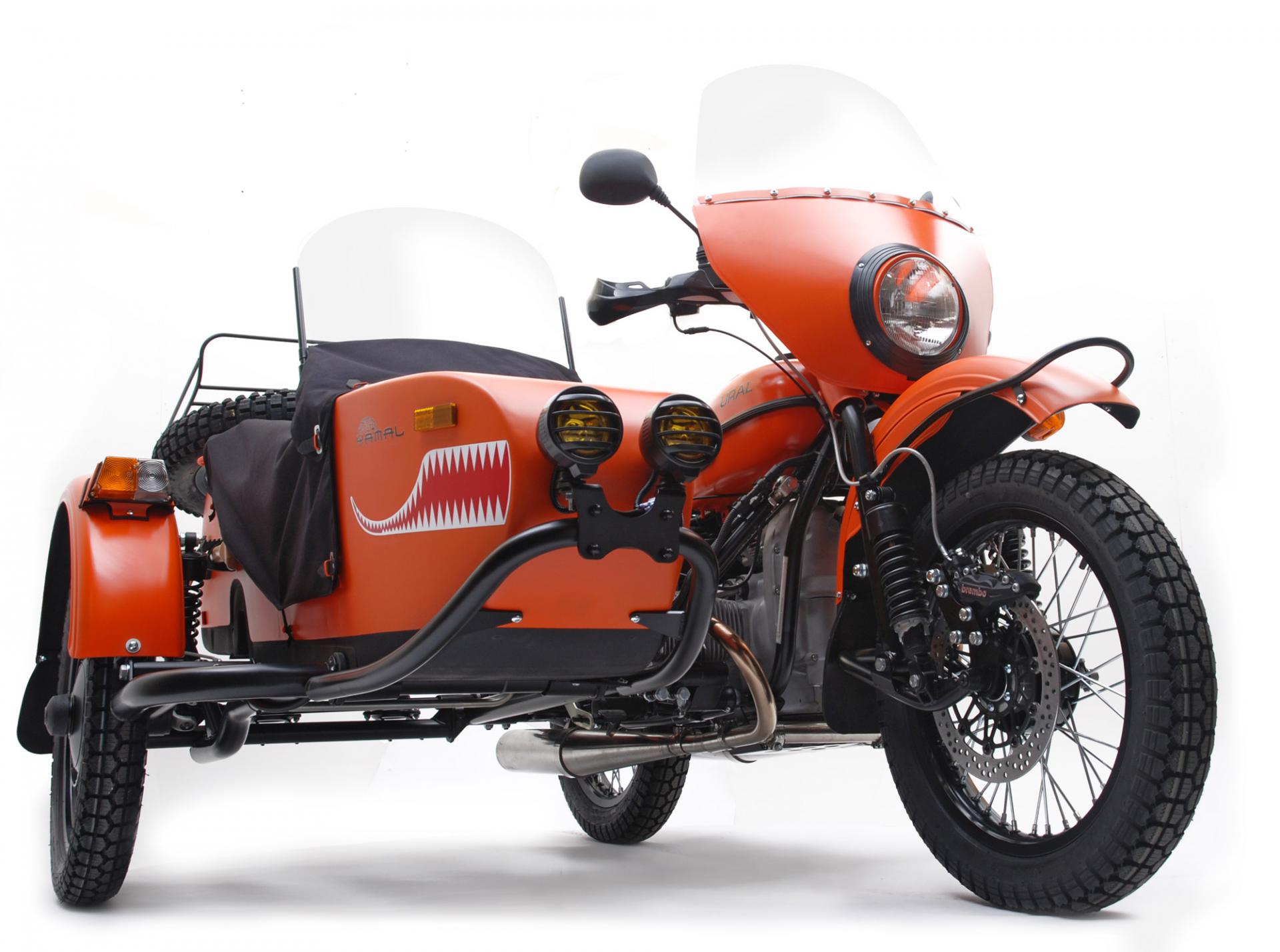 Мотоцикл окрашен в оранжевый цвет, и может похвастаться такими же зубами, как у ледокола.