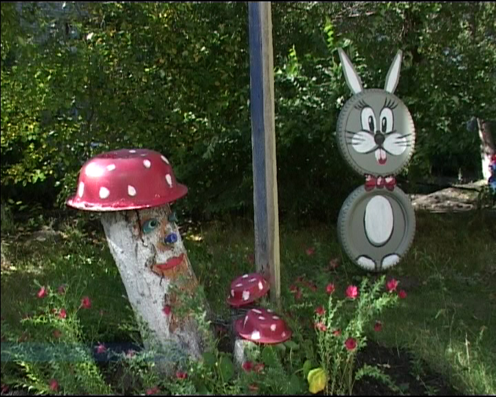 Осенний, порой чересчур свежий ветер колышет цветы. А ведь совсем недавно все изнывали от жары. Особенно доставалось растениям. Но летняя засуха их не погубила, потому что их поливали. И практически всем подъездом вырастили и красный лён, и чудесные герани, и бархатцы. И еще придумали поделки из бросового материала соорудить. Весёлый заяц из автомобильных шин каждый день встречает и провожает жильцов радостной улыбкой.