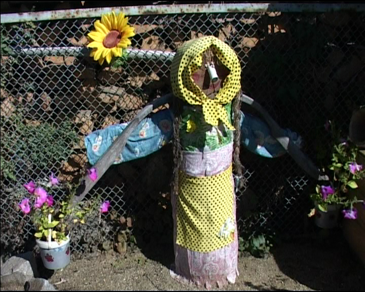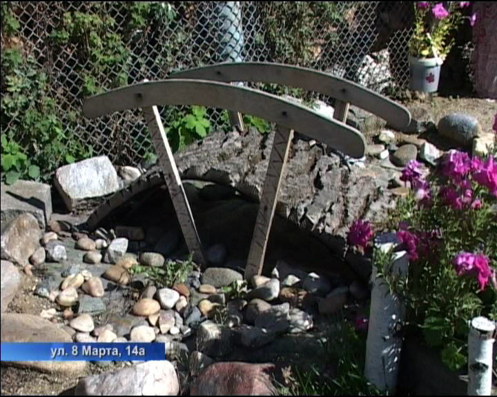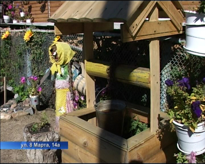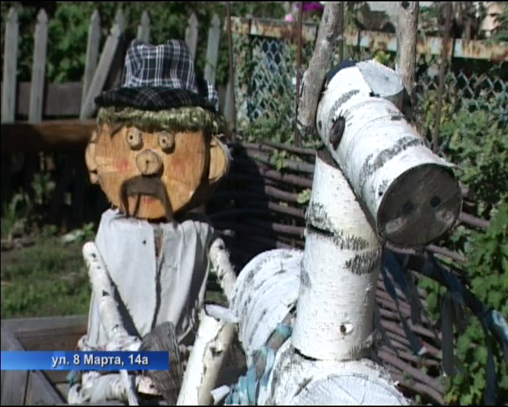 Телефонный звонок раздался в редакцию телевидения. Женщина узнала о конкурсе, проходя мимо дома, не смогла удержаться, позвонила. Съёмочная группа выехала и увидела ухоженную и сделанную умелыми руками придомовую территорию. Сцены из деревенской жизни. Все здесь выполнено с фантазией и доброй любовью к деревенской старине. Материалы все природные: из дерева срублен колодец, из березовых чурок лошадка, скульптуры людей, из большого куска коры сооружен мостик через каменистую речку. Даже клумба оформлена березой. На стук в ворота никто не ответил - видимо хозяев нет дома.