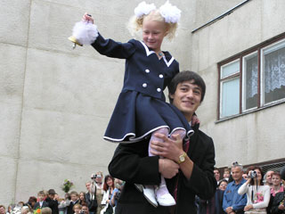 Все ли из вас помнят свой день - 1 сентября первого класса? Какая была погода, и как вообще проходил этот праздник? Я пошла в школу и так была горда, мне казалась, я стала такой взрослой, и детство кончилось. Мама завязала мне дурацкие хвостики на голове, это был такой ужас... даже вспоминать не хочется. Зато у меня были огромные белые бантики, которые было видно издалека и прекрасные гладиолусы в руках. Честно скажу, было страшно, потому что я стояла и абсолютно никого там не знала, мама и папа были далеко, а меня за руку держал какой-то мальчик (тогда всех по парам разбили). Потом на линейке что-то вещала директор, играла какая-то музыка, первый звонок, все как обычно - первоклассница на плече у старшеклассника... Потом нас повели в класс, посадили за парты, такие они огромные казались тогда... Был урок мира… А дома меня ждал огромный праздничный пирог. Такое у меня было мое первое сентября... Другие дни целого десятилетия в школе, конечно, тоже были, и помнятся, но этот был первый.