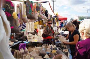 Также значительный процент ярмарочных мест был отведен сувенирной продукции и разным бытовым мелочам. Как водится, местные бабушки бойко выторговывали семена и луковицы цветов, недюжинное упорство в нарезании овощей проявляли продавцы чудо-терок и ножей, которыми можно в пять минут искромсать немыслимое количество капусты и моркови, получив при этом кусочки самых неожиданных форм, а у прилавков с одеждой для школьников к товарам приценивались родители.