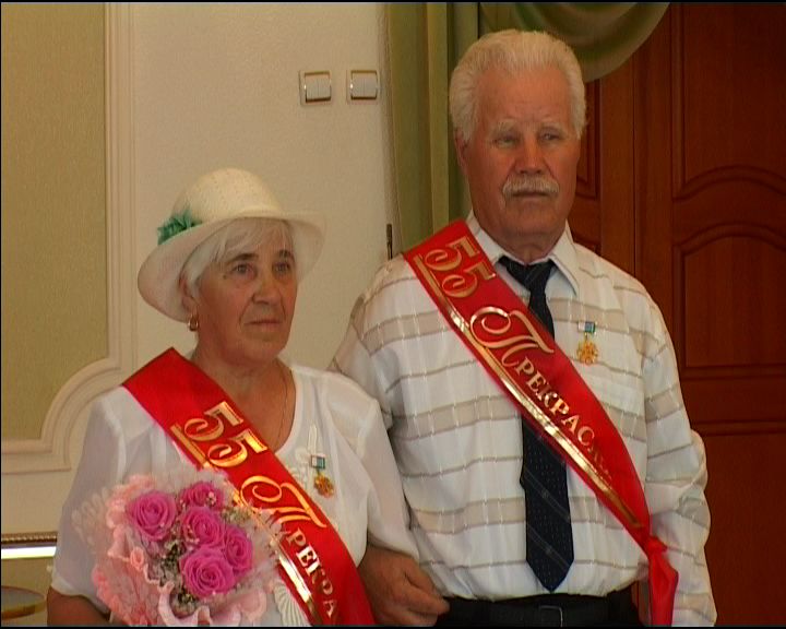 В пятницу, 13-го июля, 8 молодых пар зарегистрировали брак. А девятой парой стали супруги Кайгородовы. Они уже были в ЗАГСе, правда 55 лет назад. В этом году у Кайгородовых – изумрудная свадьба. Станислав Романович и Зинаида Петровна даже спустя столько лет прекрасно помнят день своей первой встречи. Говорят, что на стройке познакомились и с тех пор вместе 55 лет.