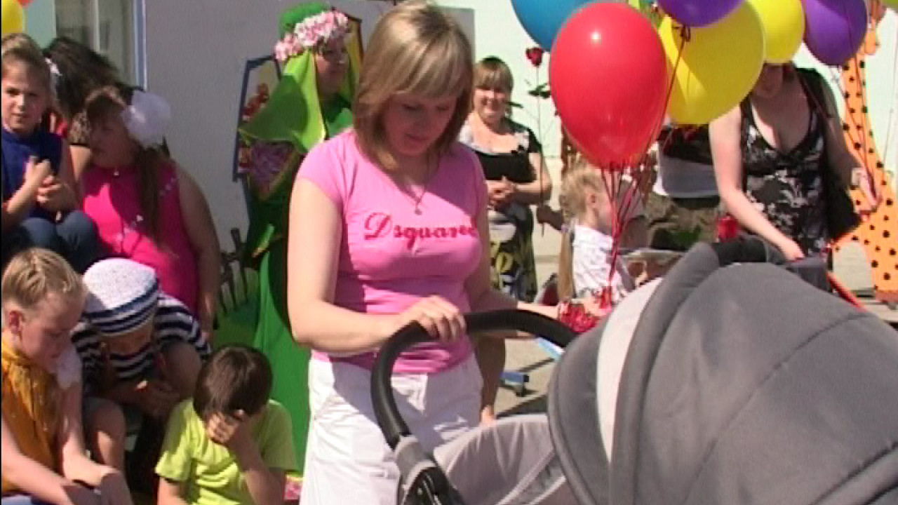 На площади у дворца культуры имени Костевича – большой праздник. Развлекательная акция «Разноцветные ступеньки». Торжественная регистрация новорождённых и воздушные шары, которые счастливые родители запустили в небо с пожеланиями счастья для своих малышей.