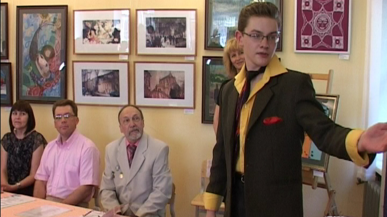 В этом году под руководством Татьяны Трапезниковой, старшего преподавателя по рисунку Ирбитской детской художественной школы выполнена одна дипломная работа в технике батик. Вообще в этом году было очень много интересных дипломных работ. Ребята очень умело использовали свои самые сильные стороны. У Дарьи Удинцевой это гуашь. Рисунок в восточном стиле. И в этот день проходила не защита, поскольку оценки уже поставлены. Состоялась презентация дипломных работ перед учредителями и гостями праздника. Артем Чусовитин представил работу «Мой город» в технике бумажной пластики. Получил оценку хорошо.