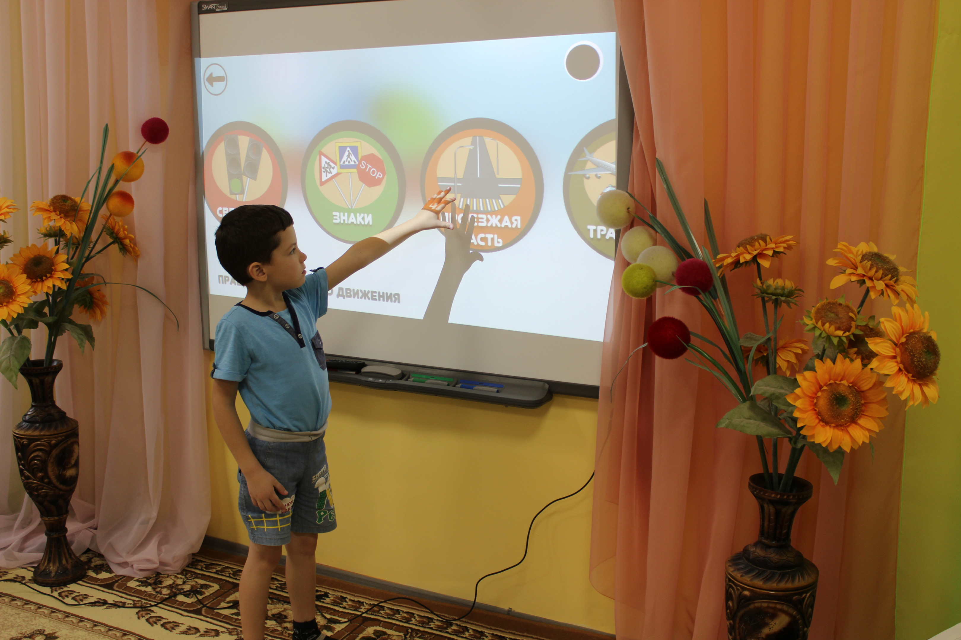 В детском саду «Василек» помогает изучать правила дорожного движения интерактивная программа «Безопасность ПДД», представляющая собой комплекс интерактивных развивающих игр, посвященных проблеме правильного поведения на дороге, и предназначенная для детей в возрасте от 3 до 8 лет. Это большое подспорье в работе педагогов в данном направлении. В игровой, доступной и понятной форме дети изучают дорожные знаки, поведение на дороге и в транспорте, в режиме реального времени видят себя, играющими во дворе или переходящими дорогу. Эта программа – своего рода «тренажер-стимулятор», где дети выполняют действия, могут ошибаться, и основываясь на собственных ошибках, делают правильный выбор, то есть тренируются, оставаясь при этом в безопасной обстановке. Все образовательные игры – подвижные. Выполняя задания, дети приседают, маршируют, перемещаются в пространстве. Дети полностью вовлечены в процесс обучения, тем самым максимально эффективно усваивают информацию.