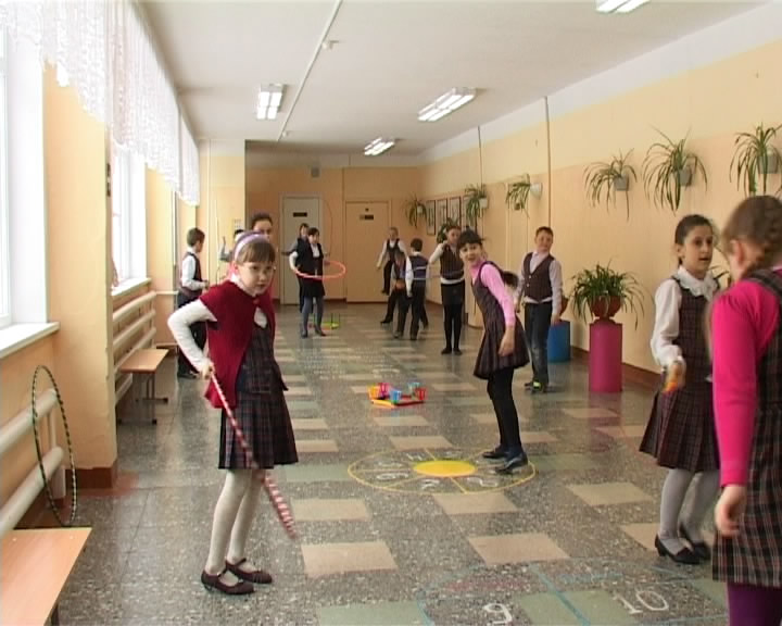 На переменах ребята начальной школы активно играют в коридоре. Но не в ляпы или салки. Они сделали для себя целый стадион. И назвали его «Весёлая переменка». Нарисованные на полу классики – любимое развлечение девочек. Больше всего прыгать по клеткам любит Диана Гордеева, ученица 4 Б. Она говорит, что для здоровья школьников подвижные игры полезны. В школе планируют сделать ещё несколько таких же стадионов. И ребята на переменах заняты, и школа становится ярче.