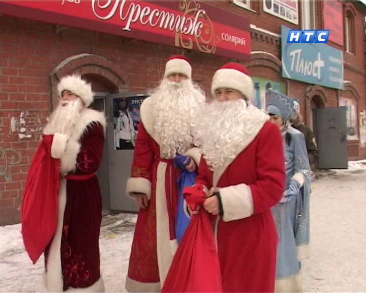 В последний день ушедшего года в городе с самого утра оживлённо. Люди спешили по магазинам – покупали подарки, продукты на новогодний стол. Но в канун Нового года без неожиданных встреч не обойтись. На улицах города появились Деды Морозы и Снегурочка, которые дарили горожанам новогоднее настроение и подарки.