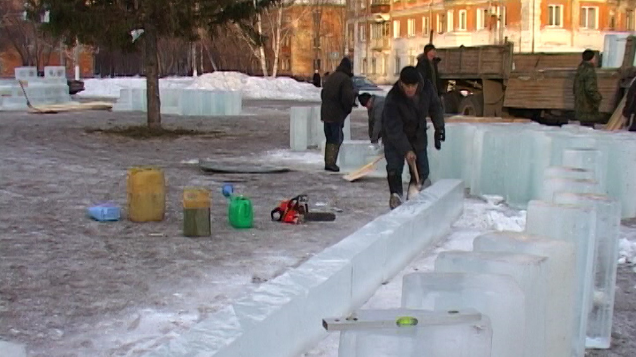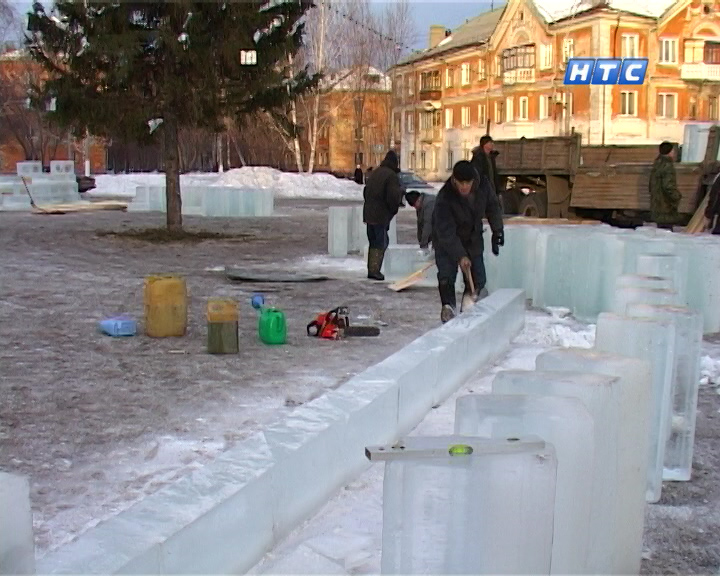 Вокруг елки буду установлены снежные скульптуры. Домик бабы Яги, ледяная ловушка. Уже готовыми привезут на площадь Деда Мороза и дракона. Будут в городке и традиционные новогодние развлечения - ледяные горки. Городок будет скоро готов, говорят строители. Художник из столицы Урала оформит горки узорами.