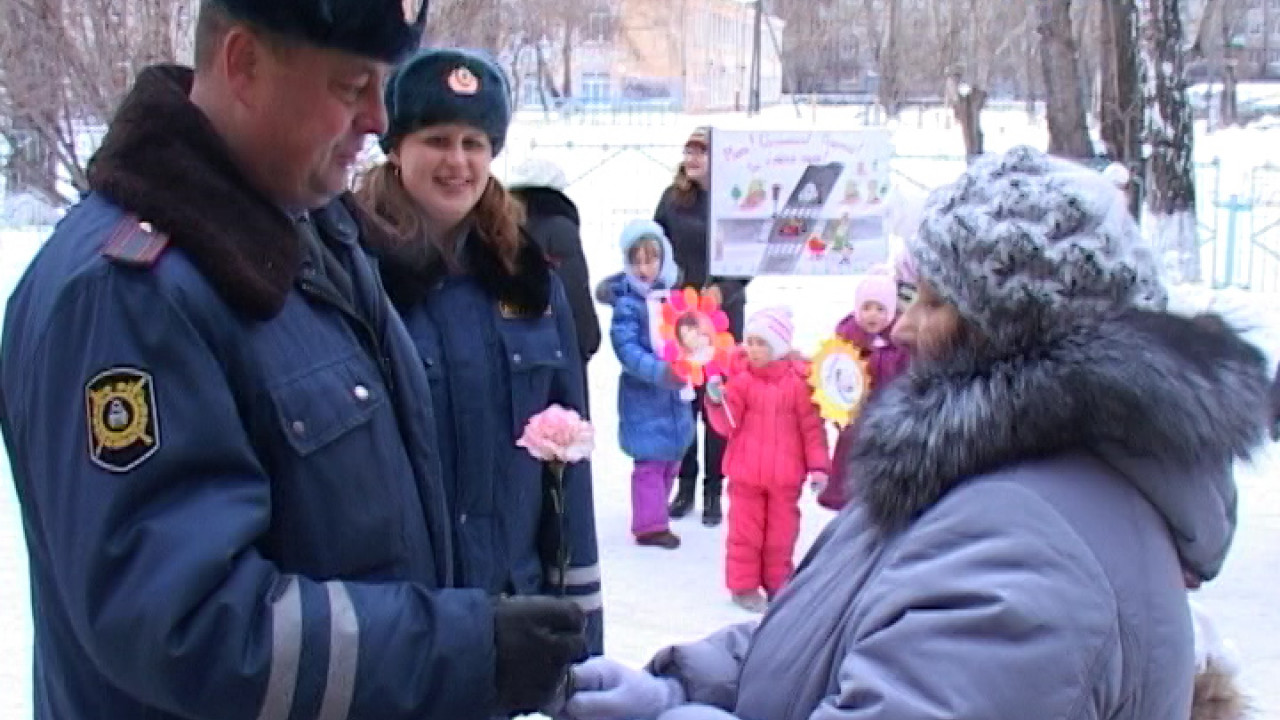 В честь дня матери начальник ГИБДД города Ирбита Вячеслав Горев раздавал молодым мамам цветы прямо на улице. И напоминал, вместе с воспитанниками 26 детского сада, о необходимости соблюдений правил дорожного движения, как родителями, так и их детьми.В канун праздника всех мам состоялась профилактическая акция. Главная цель – предупреждение аварий с участием детей. Воспитанники 26 детского сада, несмотря на холод поздравляли мам с праздником. Дети не только рассказывали стихи, но и напомнили родителям о том, что необходимо строго соблюдать правила дорожного движения. Мамочки, берегите нас – ещё один лозунг, который произносили участники акции.Начальник Госавтоинспекции Вячеслав Горев также поздравил женщин с наступающим днём Матери и вручил каждой из них цветы. Сотрудники ГИБДД особо обращали внимание родителей на то, что малыша в машине нужно пристёгивать ремнём безопасности. Или везти в специальном автомобильном детском кресле.Анастасия МеркушинаСтоп-кадр Константин Бедских
