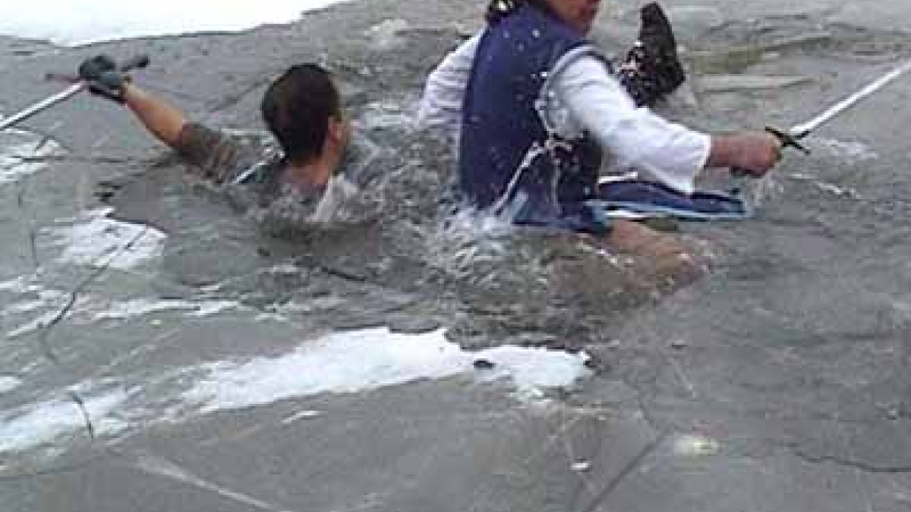 Основным условием безопасного пребывания человека на льду является соответствие его толщины прилагаемой нагрузке. Для одного человека безопасной считается толщина льда не менее 7 сантиметров.Каток можно соорудить при толщине льда 12 сантиметров и более, пешие переправы считаются безопасными при толщине льда 15 сантиметров и более, легковые автомобили могут выезжать на лед толщиной не менее 30 сантиметров. Для определения толщины льда следует его прорубить, вырубить кусок и замерить толщину.Чтобы уменьшить вероятность пролома льда и попадания в холодную воду, необходимо знать и выполнять следующие основные правила:прежде чем выйти на лед, убедитесь в его прочности; помните, что человек может погибнуть в воде в результате утопления, холодового шока, а также от переохлаждения через 15-20 минут после попадания в ледяную воду;используйте нахоженные тропы по льду. При их отсутствии, стоя на берегу, наметьте маршрут движения, возьмите с собой крепкую длинную палку, обходите подозрительные места;в случае появления типичных признаков непрочности льда: треск, прогиб, вода на поверхности льда, немедленно вернитесь на берег, идите с широко расставленными ногами, не отрывая их от поверхности льда, в крайнем случае - ползите;не допускайте скопления людей и грузов в одном месте на льду;исключите случаи пребывания на льду в плохую погоду: туман, снегопад, дождь, а также ночью;не катайтесь на льдинах, обходите перекаты, полыньи, проруби, край льда. При отсутствии уверенности в безопасности пребывания на льду лучше обойти опасный участок по берегу или дождаться надежного замерзания водоема;Никогда не проверяйте прочность льда ударом ноги.Если лед проломился:не паникуйте, сбросьте тяжелые вещи, удерживайтесь на плаву, зовите на помощь;обопритесь на край льдины широко расставленными руками, при наличии сильного течения согните ноги, снимите обувь, в которую набралась вода;старайтесь не обламывать кромку льда, навалитесь на нее грудью, поочередно поднимите, вытащите ноги на льдину;держите голову высоко над поверхностью воды, постоянно зовите на помощь;если беда произошла недалеко от берега и пострадавший способен к активным действиям, ему нужно бросить веревку, шарф, подать длинную палку, доску, лестницу;сообщите пострадавшему криком, что идете на помощь, это придаст ему силы, уверенность, надежду.можно взять длинный шест за оба конца, сориентировать его середину над пострадавшим и вытащить его из воды;для обеспечения прямого контакта с пострадавшим к нему можно подползти, подать руку или вытащить за одежду. В этой работе одновременно могут принимать участие несколько человек. Не подползайте на край пролома, держите друг друга за ноги;для обеспечения безопасности необходимо использовать подручные средства: доску, шест веревку, щит;действовать нужно решительно, смело, быстро, поскольку пострадавший теряет силы, замерзает, может погрузиться под воду;после извлечения пострадавшего из ледяной вод его необходимо незамедлительно отогреть. Способы оказания помощи пострадавшимВ том случае, когда пострадавший скрылся под водой, его необходимо постараться вытащить как можно быстрее из воды и оказать помощь. В холодной воде замедляются функции всех систем организма. Известны случаи, когда удавалось спасти человека, который находился под водо