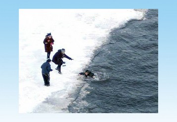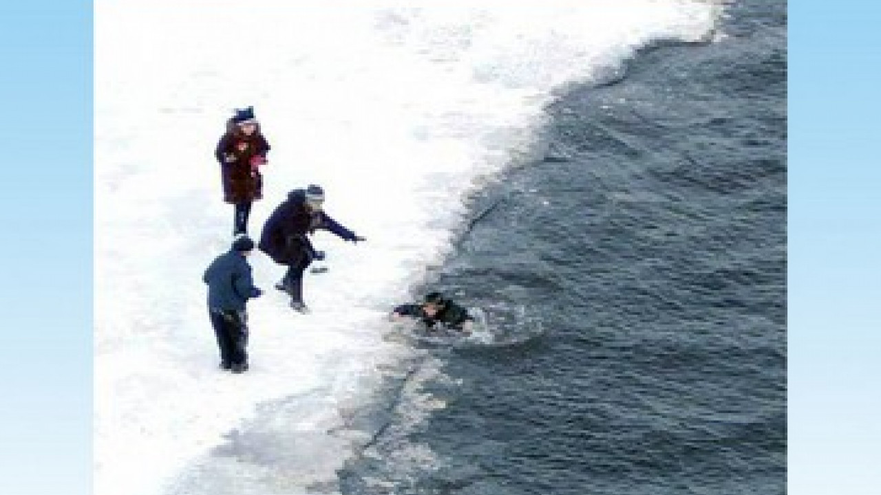 В зимнее время многие водоемы (реки, пруды, озера) покрываются льдом, И это привлекает подростков: появляется возможность покататься на коньках, поиграть в хоккей, заняться подледной рыбалкой, да и просто ради спортивного интереса перейти на другой берег водоема. Вот тут-то и подстерегают смельчаков опасности. Это связано прежде всего с риском провалиться под лед и оказаться в студеной воде.Как вести себя, если возникла необходимость пересечь замерзший водоем?Во-первых, не делать этого без острой необходимости или в одиночку. Во-вторых, знайте, что толщина льда дня безопасного передвижения человека должна быть не менее 5 см. В-третьих, если уж решили переходить, то примите меры предосторожности. Начните с визуальной разведки маршрута. Опасность для путника представляют в первую очередь полыньи, но они обычно заметны - надо быть очень внимательным. По-настоящему опасен прибрежный лед. Одним из признаков прочности льда является его цвет. Во время дождей, оттепели он становится белым (матовым), а иногда и желтоватым - такой лед непрочен и опасен. Темные пятна льда со слабым снежным покровом указывают на наличие в этом месте промоины или полыньи. Наиболее прочным бывает лед с синеватым или зеленоватым оттенком. Крепче он обычно на чистом и глубоком месте, слабее - около зарослей. Нужно избегать порожистых и устьевых участков речек - здесь тонкий лед может быть в течение всей зимы.Идти по льду лучше всего с шестом (лыжной палкой), непрерывно простукивая им лед по обе стороны и как можно дальше впереди себя (двумя-тремя ударами в одно и то же место). Ни в коем случае нельзя проверять прочность ледяного покрова ударами ноги - при этом можно провалиться в воду. Двигаться следует не торопясь, стараясь не отрывать ног ото льда, скользящим шагом и соблюдая интервал между идущими 3-5 м.Вдруг лед не выдержал, и вы провалились! Не пугайтесь. Помните о первом правиле психологической защиты - нет безвыходных ситуаций. Не предпринимайте отчаянных, необдуманных действий, не тратьте напрасно силы. Провалившись, человек, как правило, не окунается с головой - сухая одежда придает достаточную плавучесть и позволяет какое-то время находиться на плаву. Знайте, что человек в зимней одежде способен находиться в ледяной воде, упираясь в кромку льда локтями и предплечьями, до 30-40 мин. Используйте это время и попробуйте выбраться. Как это сделать? Прежде всего попытайтесь занять в воде горизонтальное положение и найти на льду какую-нибудь опору, за которую можно было бы зацепиться и подтянуться. Такой опорой может быть острый конец шеста (лыжной палки), нож, примерзший кусок льда, трещина во льду и т. д. Опираясь грудью на кромку льда и держась за опору, осторожно пытайтесь выползти на прочный лед. Если первая попытка не удалась - лед обломился, а намокшая одежда начинает тянуть вниз, спокойно попытайтесь снять обувь и, работая ногами, занять горизонтальное положение, затем вновь попытайтесь вытянуть себя на лед.Выбравшись на лед, отползите от полыньи на прочный лед и только тогда встаньте и короткими частыми шагами передвигайтесь к берегу.Если вы не один (считайте, что вам повезло!), то ваш попутчик должен лечь на лед с раскинутыми в сторону руками и ногами, и ползком продвигаться к вам на расстояние, позволяющее подать палку, шест, лыжу или бросить конец шарфа, ремень, 