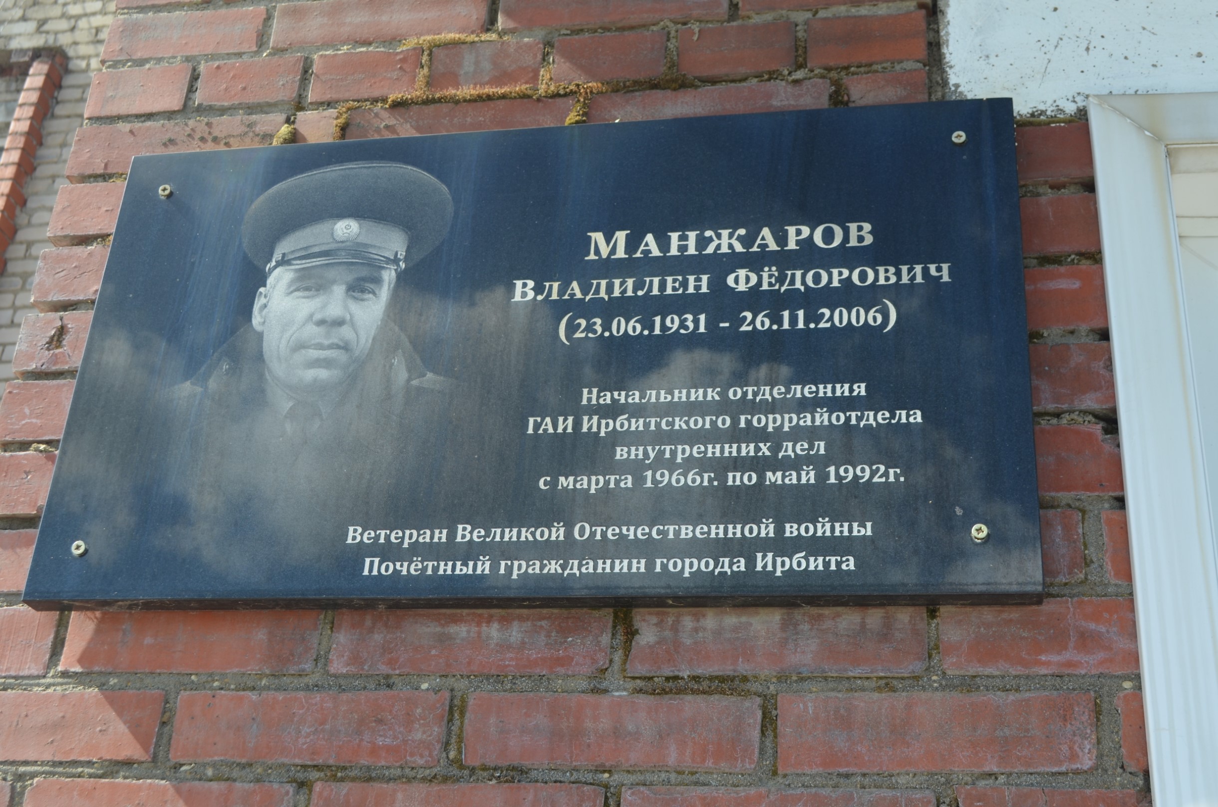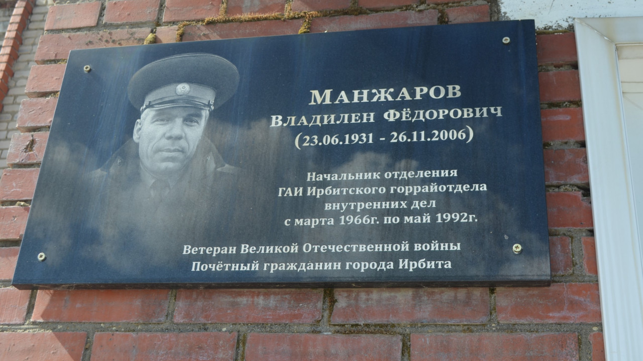 23 июня 2021 года возле здания ГИБДД у мемориальной доски В.Ф.Манжарова – почетного гражданина города Ирбита, человека, который более 26 лет возглавлял ГАИ г.Ирбита и Ирбитского района, было проведено торжественное построение сотрудников, посвященное 90-летию со дня его рождения.