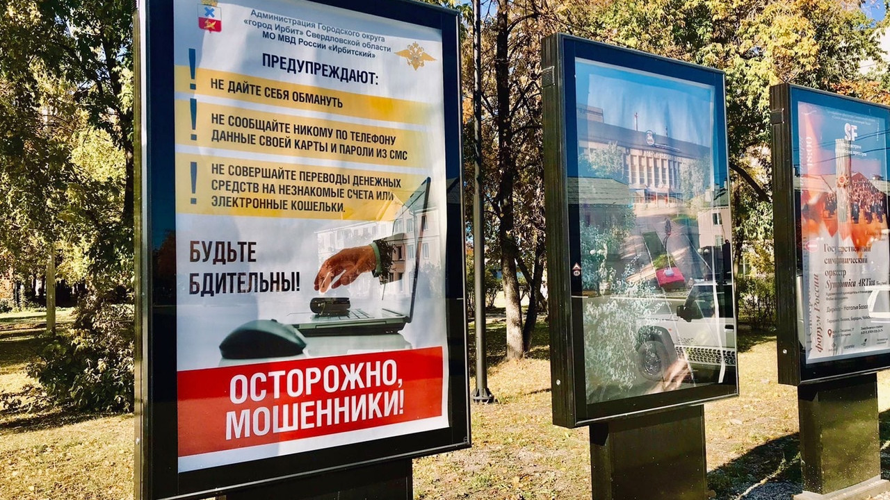 Накануне при содействии Администрации Городского округа «город Ирбит» информация по профилактике дистанционного мошенничества появилась на одной из уличных световых панелей, расположенной близ аллеи памяти мотозаводцев и Дворца культуры им.В.К.Костевича.