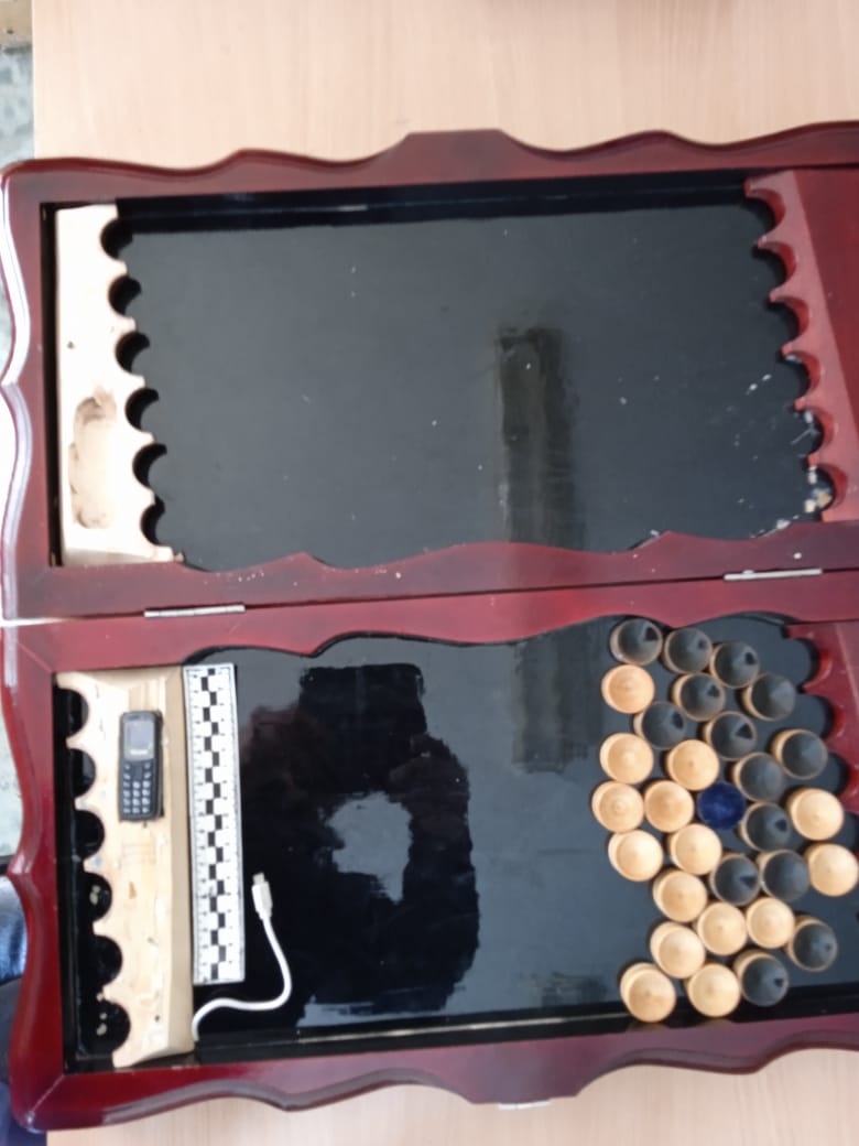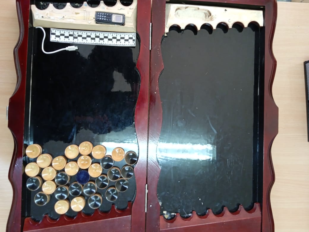 7 апреля в сборном отделении СИЗО-2 (г.Ирбит) при проведении полного личного обыска, прибывшего из полицейского изолятора временного содержания - ИВС гражданина С., был обнаружен и изъят сотовый телефон с SIM-картой и зарядным устройством, спрятанные в деревянных нардах.