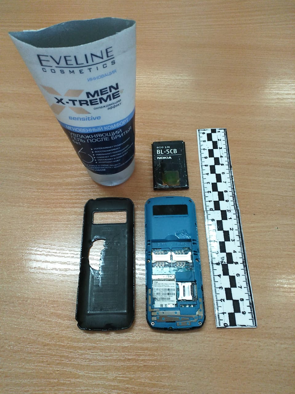 22 января в СИЗО-2 (г. Ирбит) в ходе реализации оперативной информации сотрудниками дежурной смены при проведении полного личного обыска прибывшего плановым железнодорожным этапом З. осужденного по ст. 11 ч. 4, 116 ч. 1, 134 ч. 1 УК РФ к 11 годам лишения свободы в личных вещах обнаружен и изъят 1 сотовый телефон, спрятанный ухищренным способом в тюбике пены для бритья.