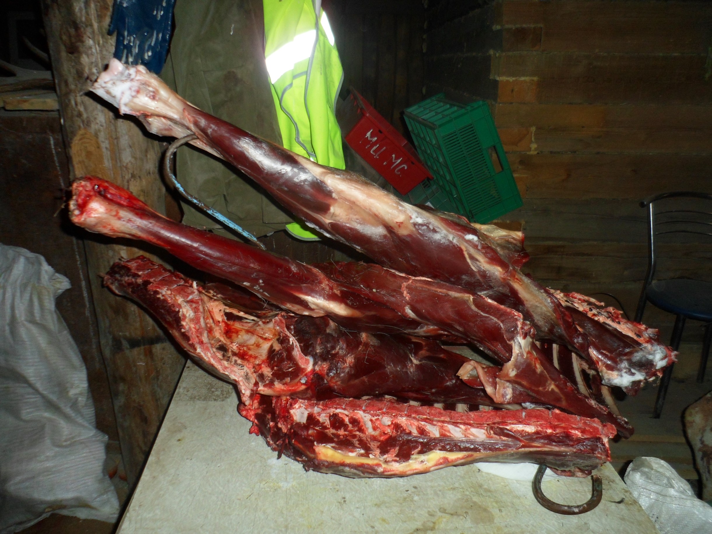 В ходе оперативно-следственных действий была установлена причастность к совершению преступления жителя данного населенного пункта. При опросе охотник отрицал свою причастность к совершенному преступлению. Однако, входе осмотра прилегающей к его дому территории стражи порядка обнаружили 7 частей четвертин лосей. После этого стрелок сознался в совершении данного преступления и пояснил, что одну четвертину животного успел переработать на фарш. Сотрудники полиции изъяли в качестве вещественных доказательств охотничье гладкоствольное ружье, зарегистрированное в установленном законом порядке, патроны к нему, а также мясо животных.