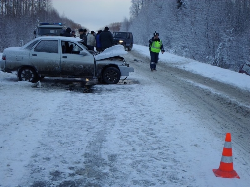 Женщина-водитель автомобиля «ВАЗ-2110» допустила выезд на полосу встречного движения, где столкнулась с двигавшимся во встречном направлении автомобилем «ВАЗ-211113» («Ока»), под управлением мужчины 1954 года рождения.