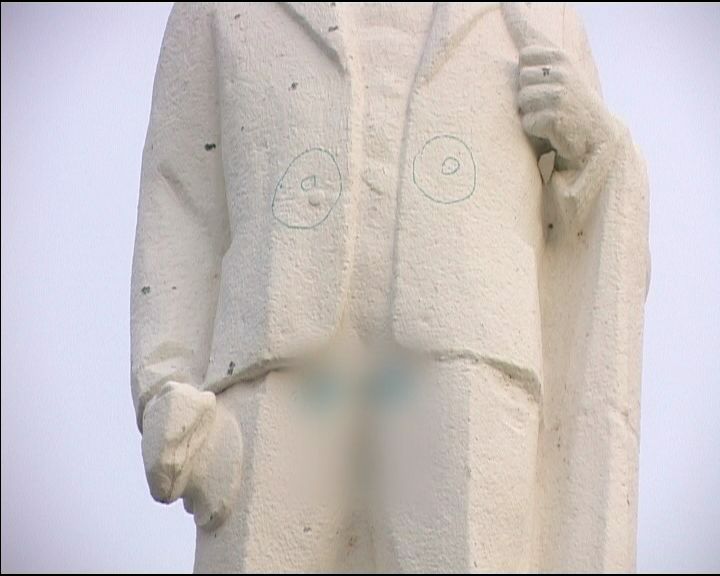 Неизвестные испачкали памятник краской. На сегодняшнем аппаратном совещании глава города Геннадий Агафонов дал распоряжение начальнику отдела коммунального хозяйства Николаю Юрьеву, привести памятник в надлежащий вид.