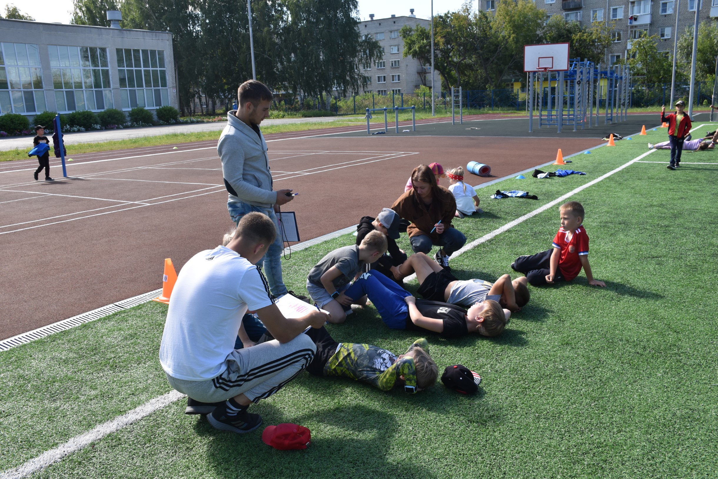 В середине августа дети из летнего лагеря с дневным пребыванием школы №10 приняли участие в сдаче нормативов комплекса ГТО. 28 участников в возрасте от 6 до 12 лет (I-III ступени) продемонстрировали себя в беге на короткие и длинные дистанции, сгибании и разгибании рук в упоре лежа на полу, подтягивании из виса на высокой перекладине и лежа на низкой перекладине, наклоне вперед из положения стоя с прямыми ногами на гимнастической скамье, поднимании туловища из положения лежа на спине, метании теннисного мяча и мяча весом 150г, прыжке в длину с места двумя ногами.