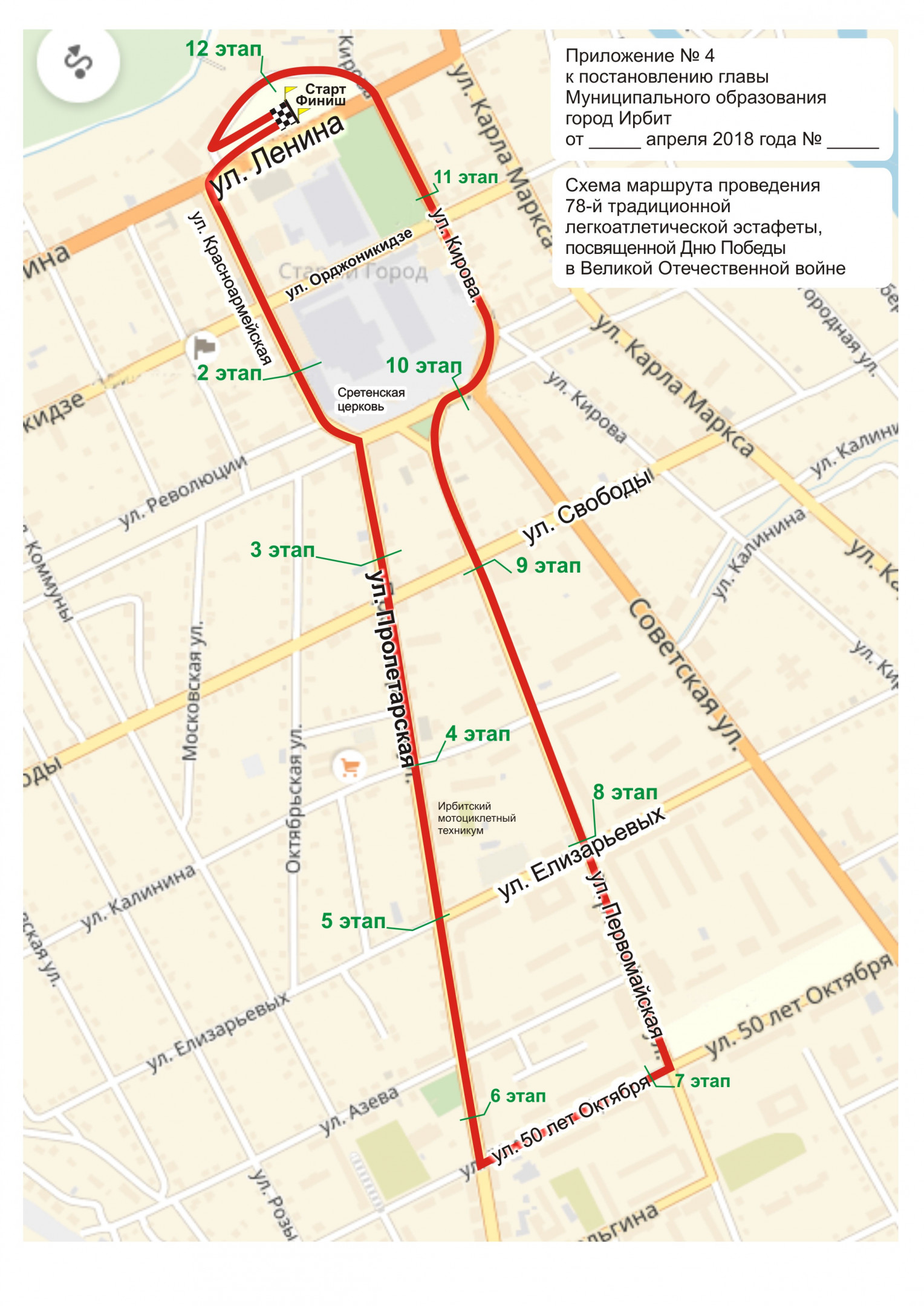 7 этап (400 м) – ТЦ «Первомайский» – Ирбитский гуманитарный колледж;
