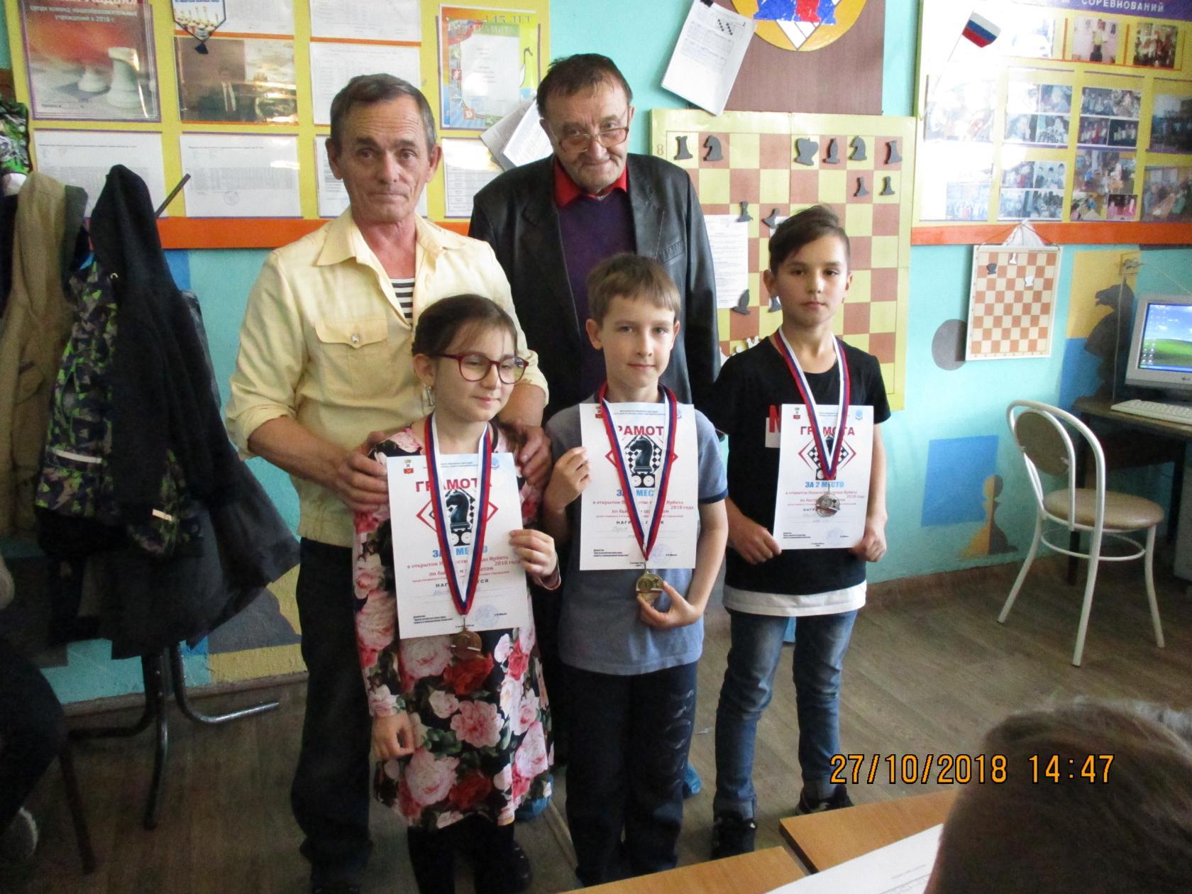 27 октября 2018 года в шахматном клубе «Гамбит» прошло Открытое Первенство города Ирбита по быстрым шахматам среди учащихся 1-2 и 3-4 классов общеобразовательных школ города и района. В соревнованиях приняли участие 22 школьника. Победителем среди 1-2 классов стал Волков Александр школа №8, на втором месте Иванов Виктор школа №13, на третьем месте Аббасова Манузар школа №8. Обладателем золотой медали и грамоты за первое место среди 3-4 классов стал Коростелев Кирилл школа №10, «серебро» у Рожкова Всеволода школа №9, бронзовым призером стал Граф Герман школа №13.