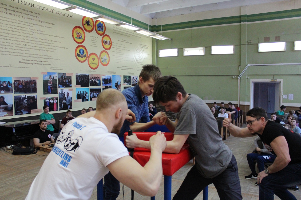 12 февраля 2019 года в актовом зале Ирбитского гуманитарного колледжа впервые в рамках Спартакиады учебных заведений Муниципального образования город Ирбит прошло Первенство города по армрестлингу среди юношей, посвященное Дню защитника Отечества. Соревнования прошли в четырех весовых категориях до 60 кг, до 70 кг, до 80 кг, 80+ кг.
