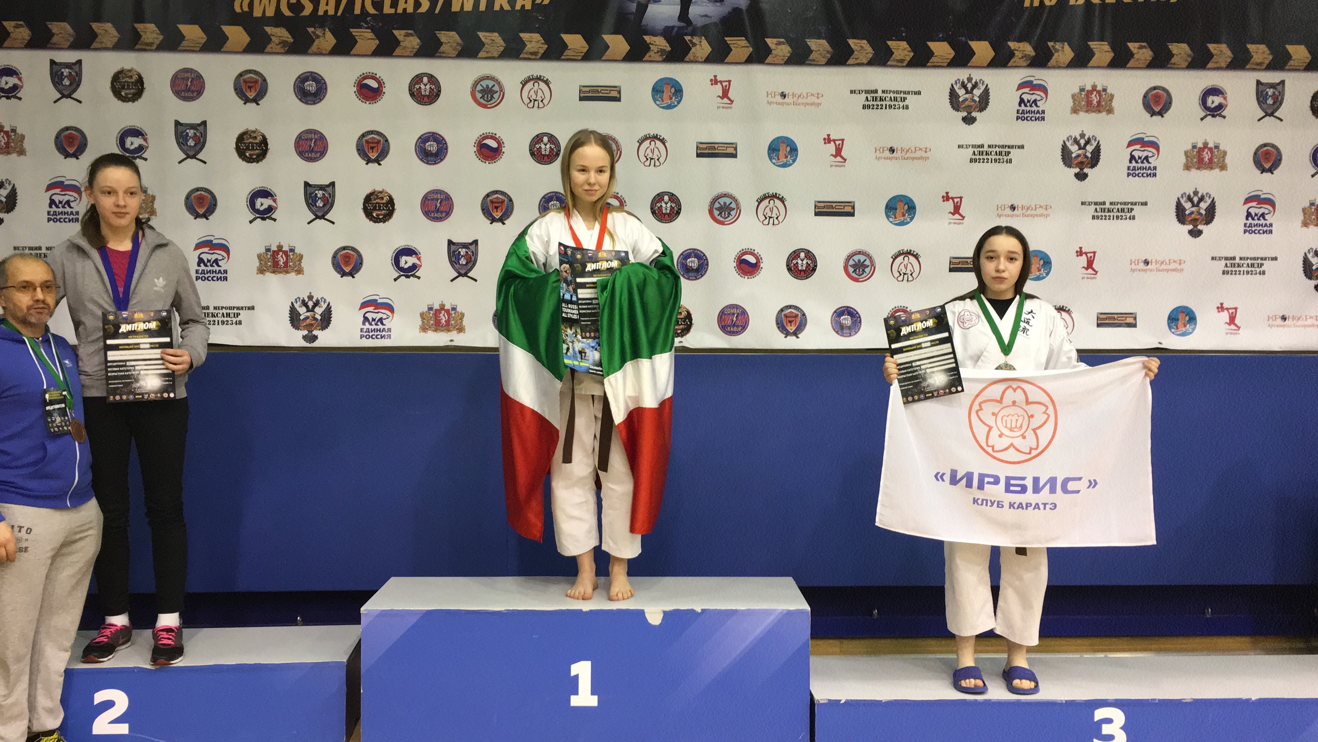 III место – Катя Мусатова (кикбоксинг), Василий Карьков (кикбоксинг), Максим Бердюгин (ММА) и Михаил Орлов.