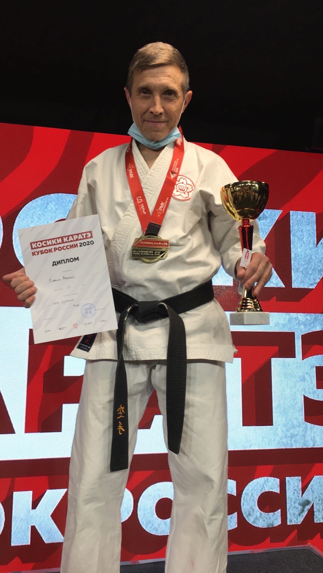 I место в разделе ката, среди мужчин, занял тренер клуба Василий Елькин;