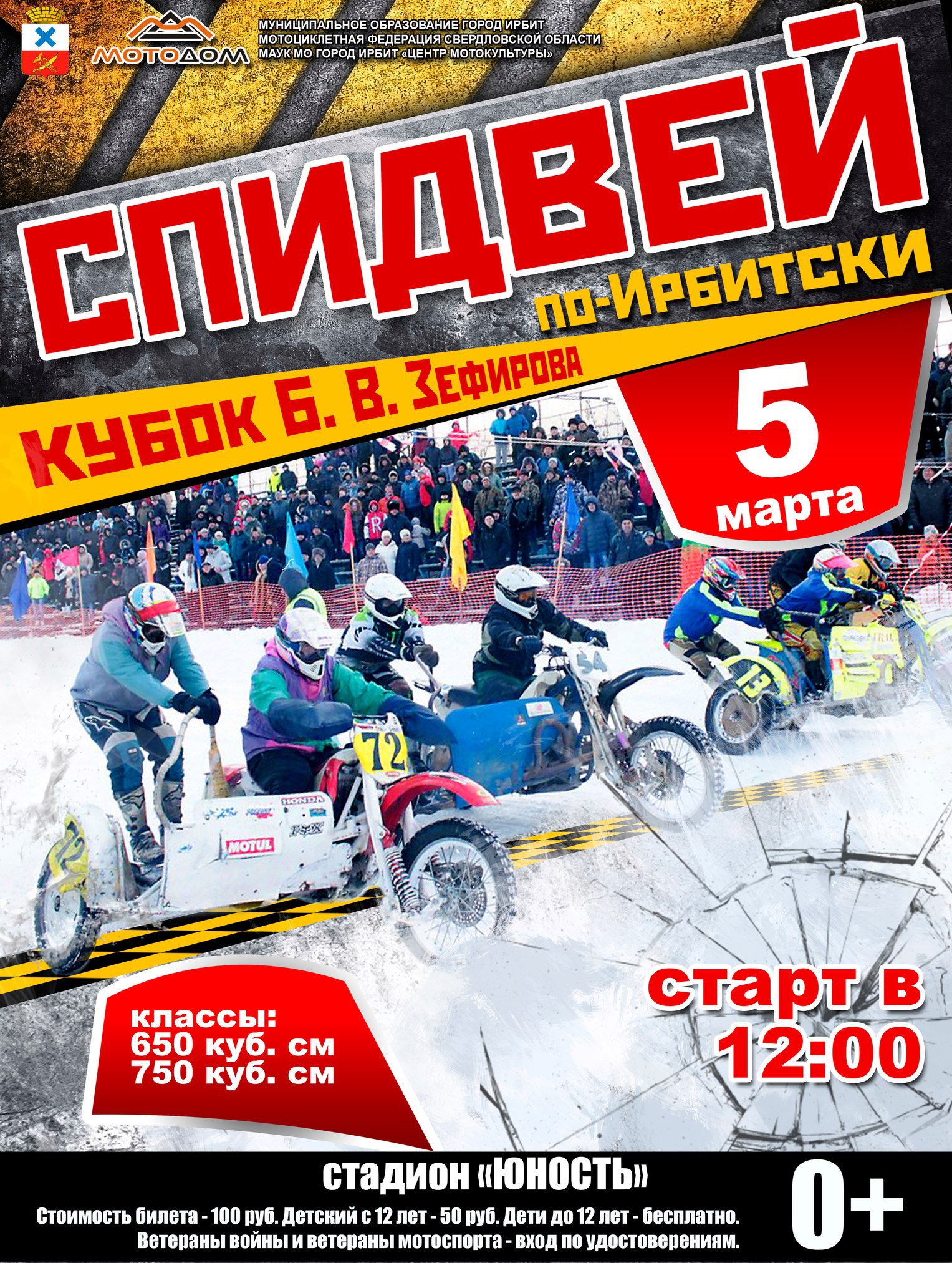5 марта в г.Ирбите на стадионе "Юность" состоятся традиционные уже 22-е личные соревнования по мотоциклетным гонкам на снежном треке СПИДВЕЙ ПО-ИРБИТСКИ "Кубок Б.В.Зефирова"