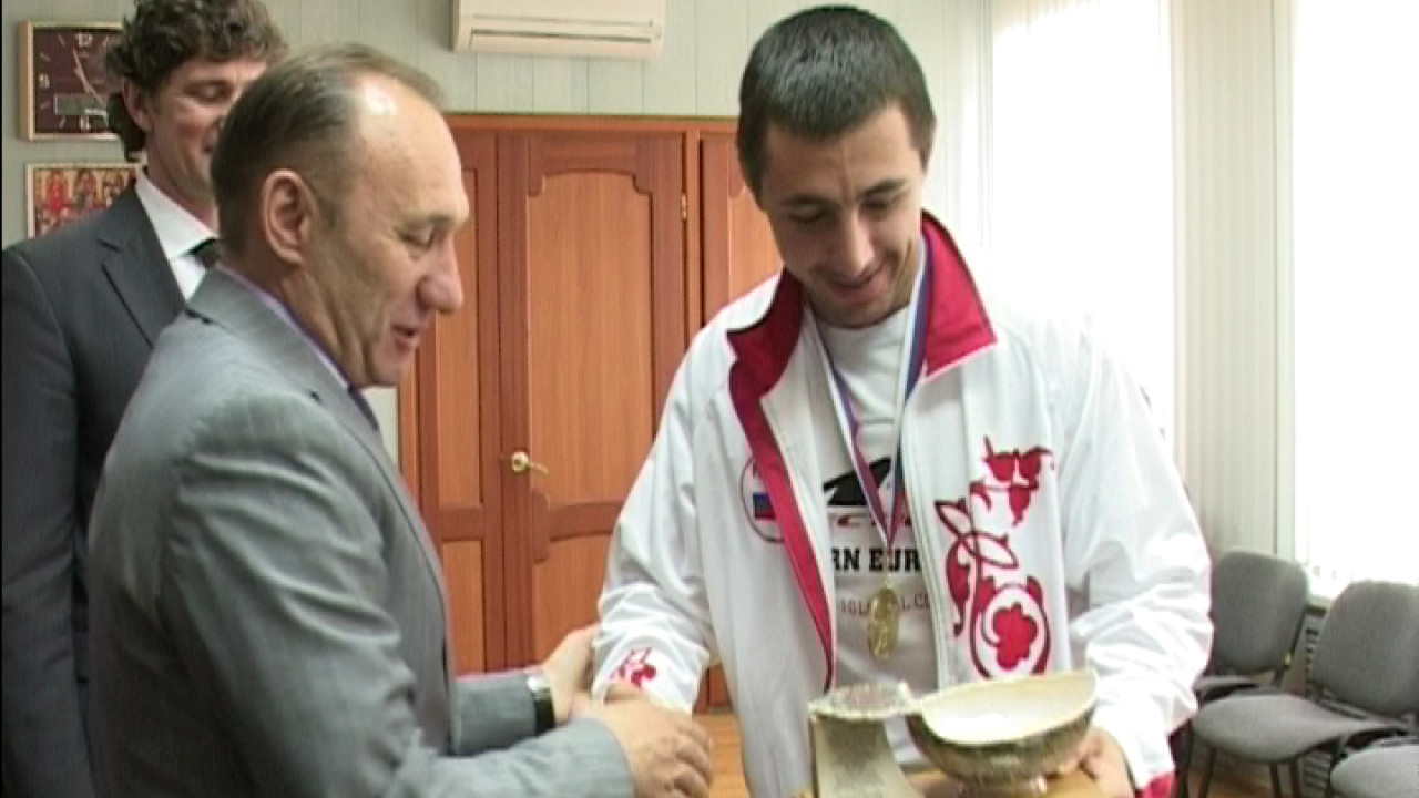 В администрации города прошла встреча главы города Геннадия Агафонова с чемпионом мира по комбат-греплингу Дин–Мухаммедом Алиевым.