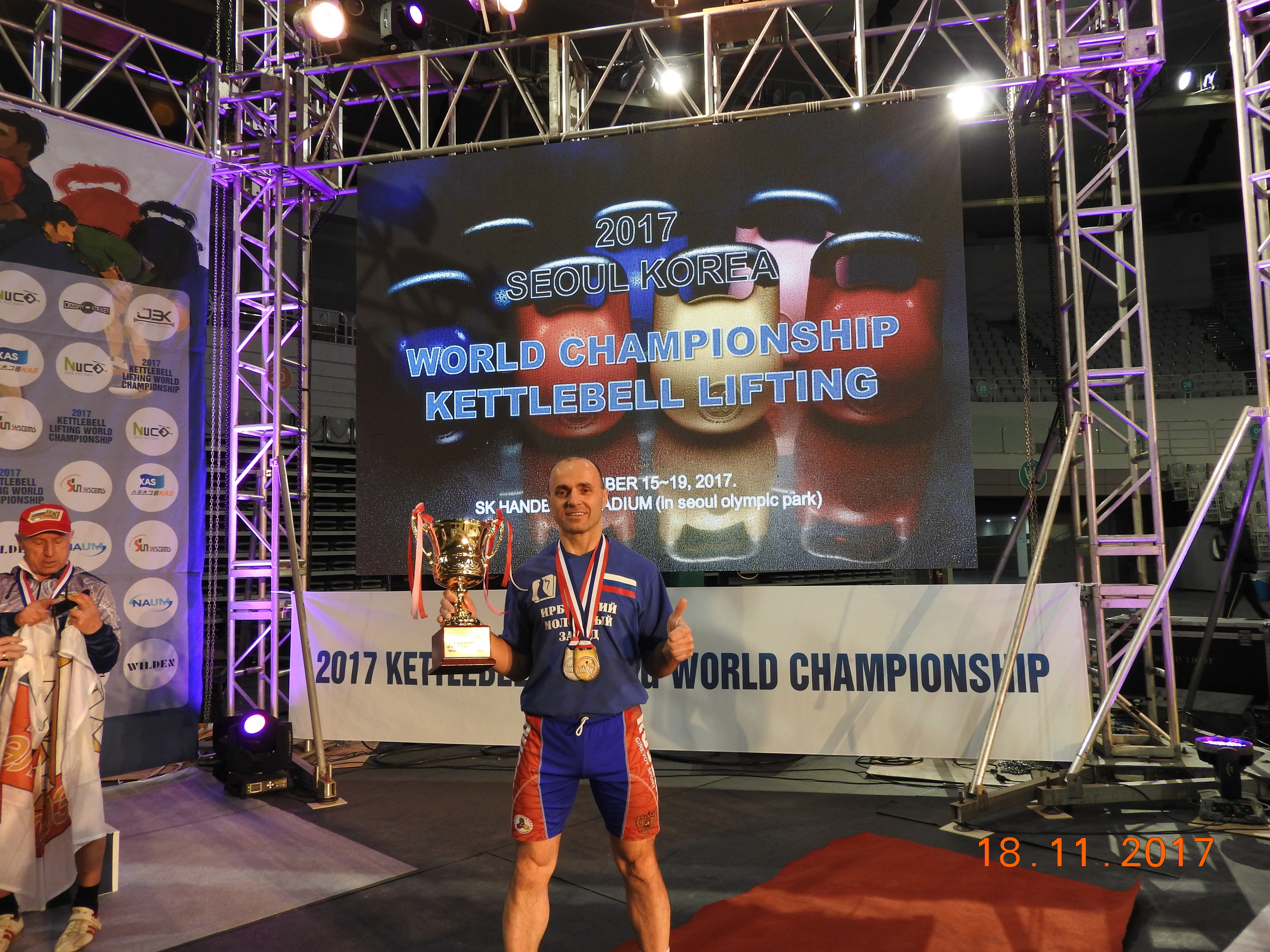 С 15 по 19 ноября 2017 года в городе Сеуле Южная Корея прошел Чемпионат мира по гиревому спорту. Одновременно прошло Первенство мира среди юниоров и ветеранов. Свердловскую область представляли четыре спортсмена Бестужев Сергей (г. Нижний Тагил), Ашихмин Сергей (г. Екатеринбург), Квашнин Михаил (р.п. Пышма) и наш земляк Дудин Роман (г. Ирбит). Роман Дудин выступал в возрастной категории 45-49 лет, в весовой категории до 73 кг и занял первое место в двоеборье, значительно улучшив личное достижение в толчке и в сумме двоеборья. Роман показал лучший результат в абсолютной весовой категории в своей возрастной группе. В рывке был установлен новый рекорд России и мира для этой весовой категории 252 подъема, предыдущий результат Романа составлял 249 подъемов. Также Роман Дудин завоевал серебряную медаль в командной эстафете в упражнении «Классический толчек». Всего уральские спортсмены привезли 7 золотых и 1 одну серебряную медали. В командном зачете среди юниоров, мужчин и ветеранов сборная России заняла первые места.