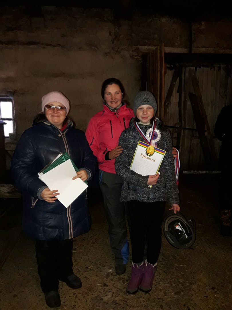 Последним зачетом стал самый быстрый и самый зрелищный вид состязаний – конкур. Четырем участницам предлагался сложный маршрут с высотой препятствий до 60 см. Первой на Заветной мечте стала Дарья Зырянова. Надо отметить, что Даша занялась прыжками совсем недавно. И тем приятнее ее результат. На втором месте Ксения Сивкова на Морошке, на третьем – Александра Митрюкова на Заветной Мечте. Александра показала самый резвый результат по дистанции, но ее, к сожалению, подвело разрушение препятствия.
