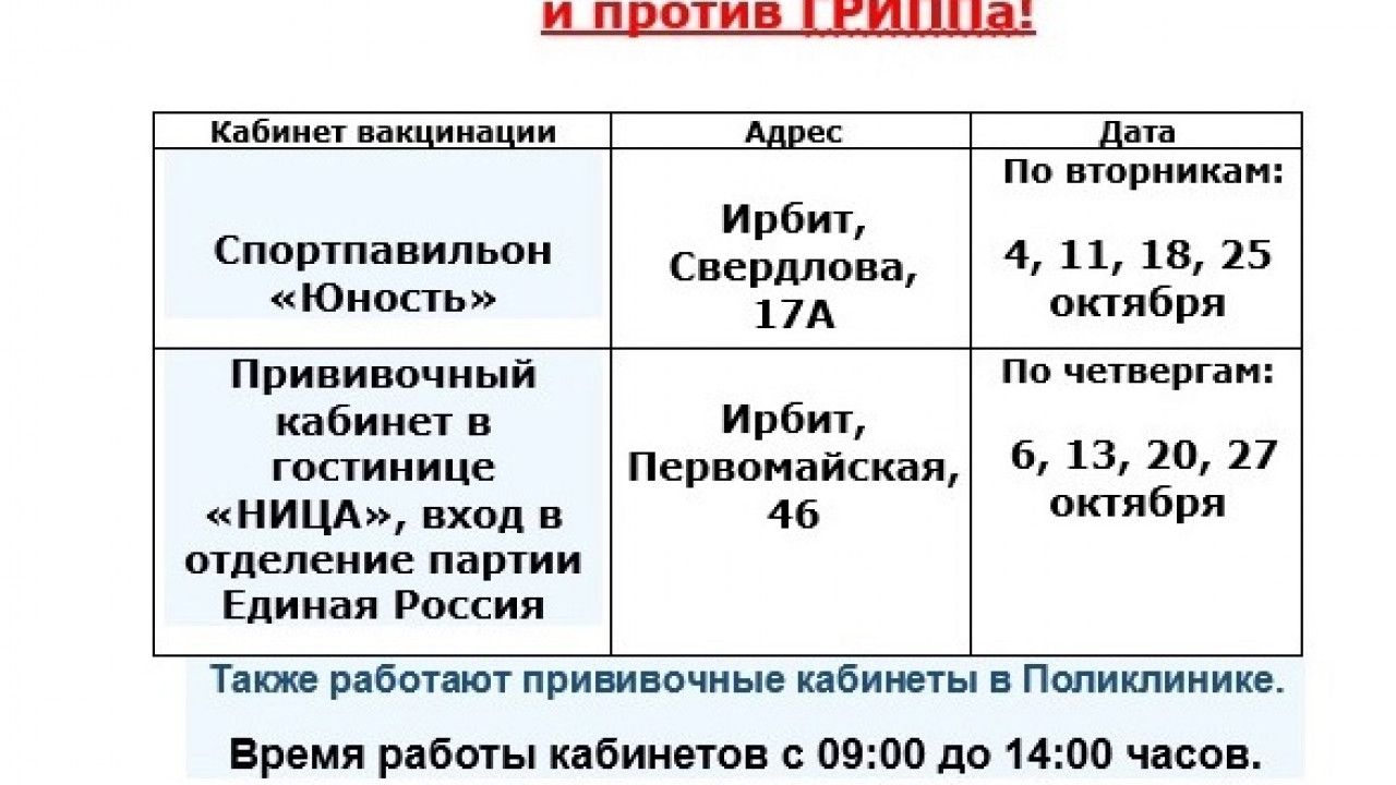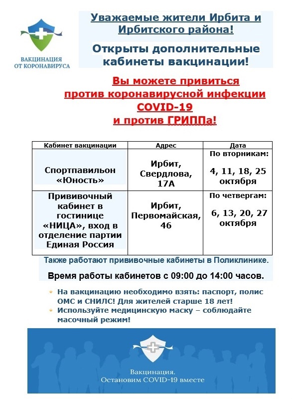 "Уважаемые жители Ирбита и Ирбитского района! Помните, иммунитет формируется в течение двух - четырех недель после постановки прививки. Поэтому, очень важно пройти вакцинацию сейчас, прививка обеспечит защиту от вирусов и серьезных осложнений!", - рассказал главный врач Ирбитской ЦГБ, Дмитрий Подушкин.