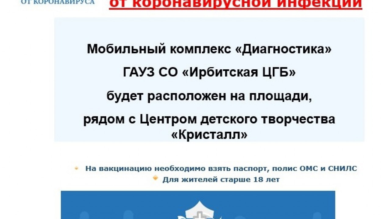 Мобильный комплекс «Диагностика» ГАУЗ СО «Ирбитская ЦГБ» будет расположен на площади, рядом с Центром детского творчества "Кристалл".